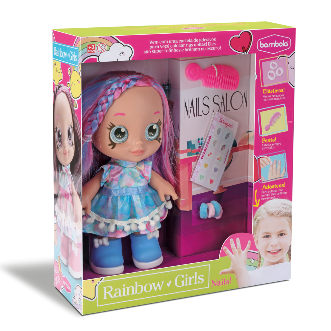 A Rainbow Girls Nails Pinkazul é uma boneca super estilosa que vai encantar as