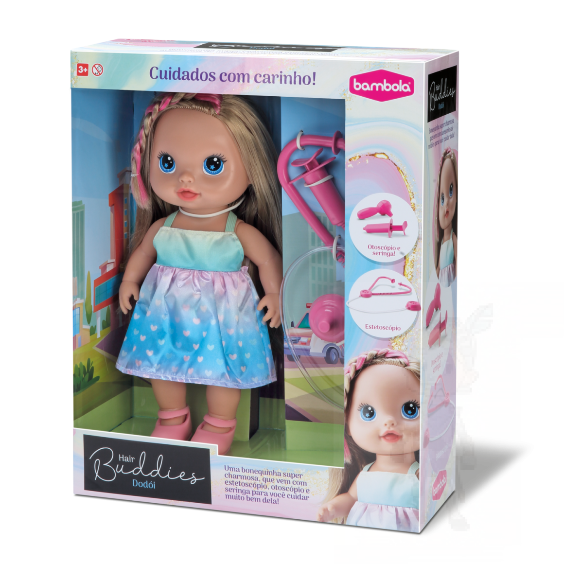 Feita de polipropileno de alta qualidade, tecidos e vinil, a boneca Dodói é durável e projetada para resistir a horas de brincadeira. A boneca é recomendada para crianças a partir de 3 anos, tornando-se um presente ideal para qualquer ocasião.