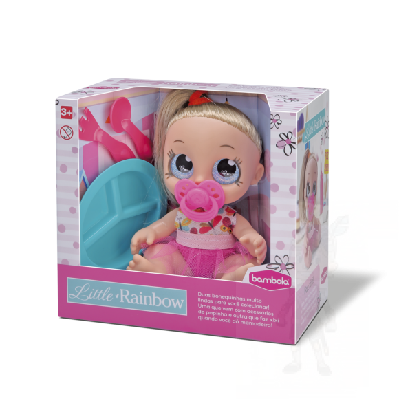 A Boneca Little Rainbow Papinha é ideal para crianças a partir de 3 anos.
