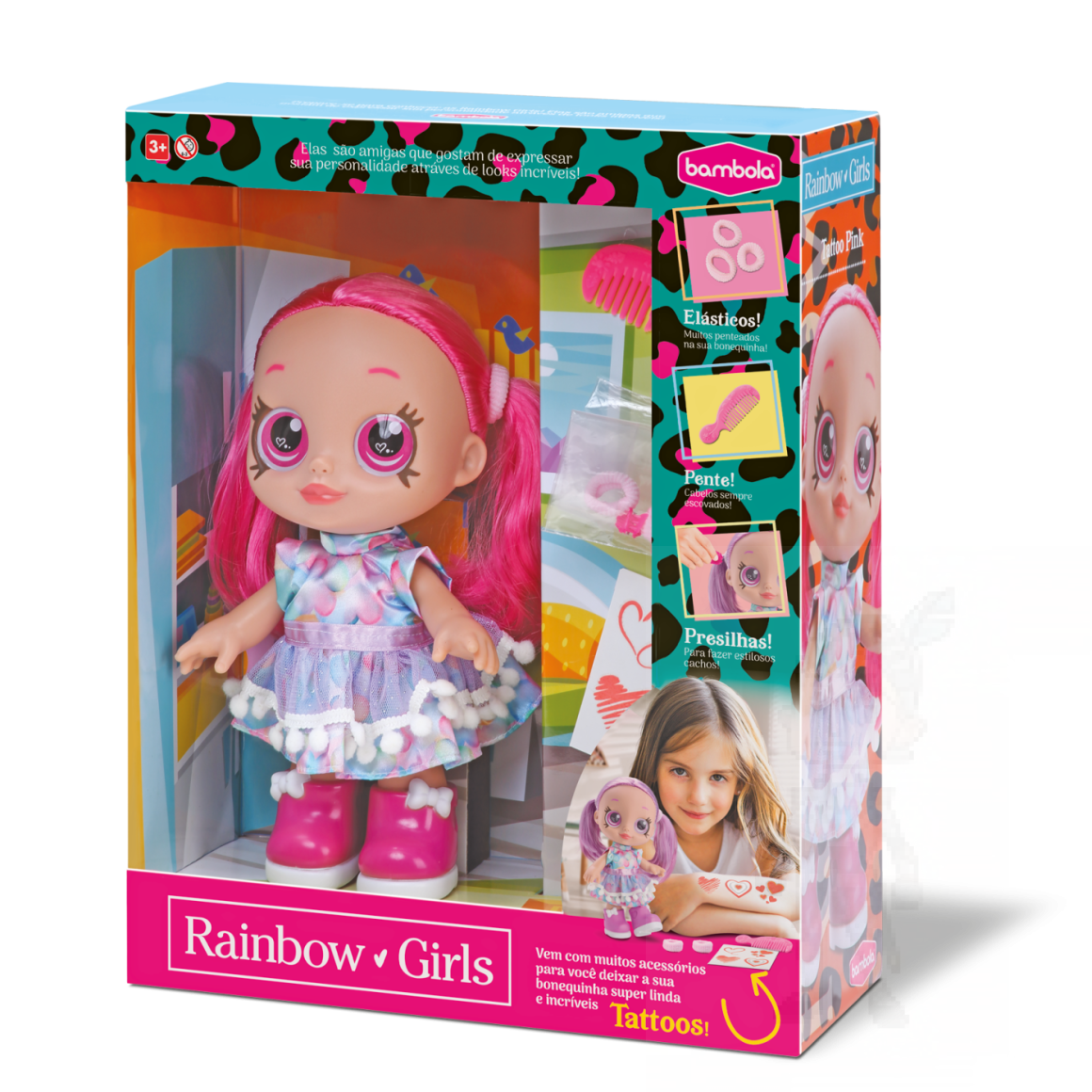 A Rainbow Girls Tatoo é uma boneca super estilosa que vai encantar as pequenas!