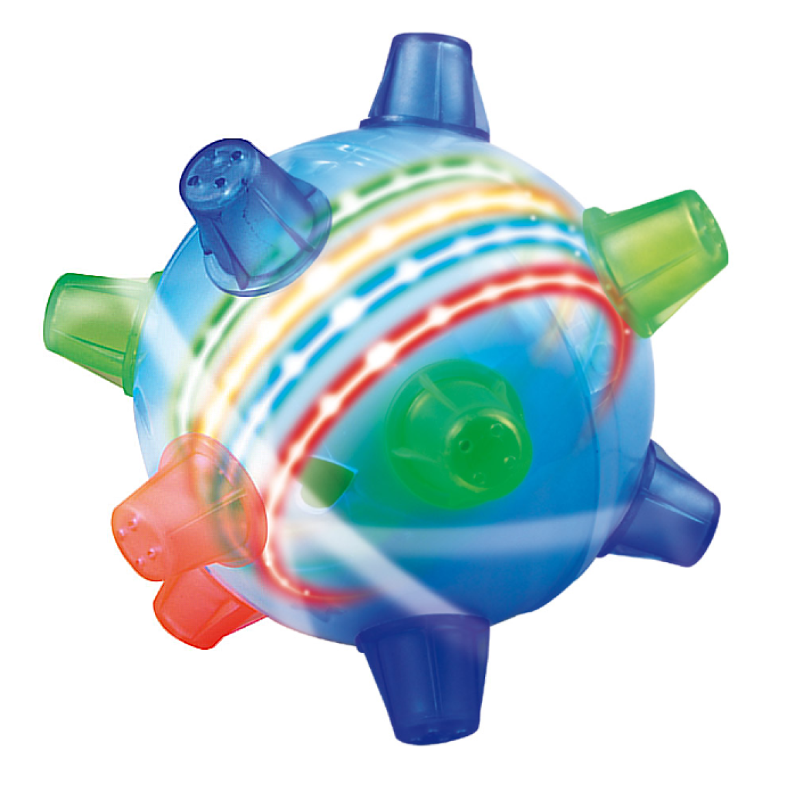 Coloca-se no chão e ela começa a pular e girar com som e luzes coloridas;
