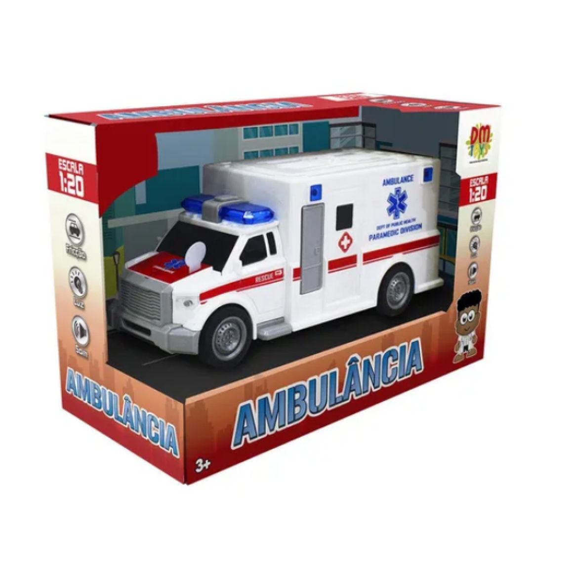 AMBULÂNCIA FRICÇÃO COM SOM E LUZ - DM TOYS